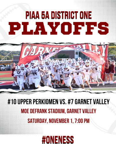 The Garnet Valley Jaguars Football Team earned a hard-fought 17–7 victory over Ridley last Friday night. The #7-seeded Jaguars will now host the #10 Upper Perkiomen Indians on Saturday at the Moe!