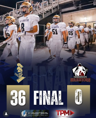 The Rustin Golden Knights Football Team dominated Henderson, earning a 36–0 victory. Running back Jimmy Boland led the way with three rushing touchdowns. Congratulations to Rustin Football on a commanding win and strong showing to close out the season.