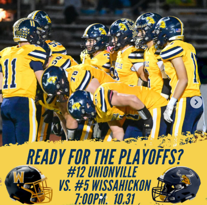 The Unionville Football Team defeated Conrad Weiser to clinch the #12 seed in the upcoming District Playoffs. The team will face #5 Wissahickon this Friday night. Congratulations to the players and coaches, and best of luck as Unionville Football begins its postseason run.