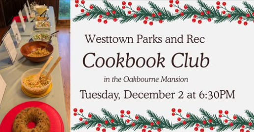 The Westtown Township Cookbook Club invites residents to a community tasting night at Oakbourne Mansion, 1014 South Concord Road, West Chester, on Thursday, December 4, 2025, from 6 to 8 p.m. Participants will prepare and bring a recipe from this month’s featured cookbook, Celebrate with Babs by Barbara Costello.