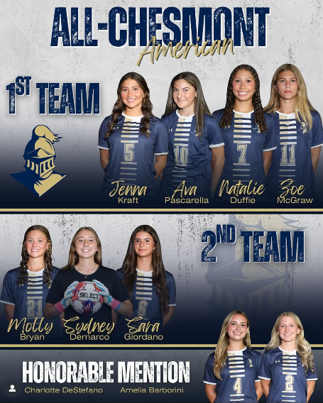 All-Ches-Mont teams were announced. Congratulations to Sophia Hnetinka (First Team), Luke Haulihan (Second Team), Gracie Impriano (Honorable Mention), and Colin Finnegan (Honorable Mention) for their selections. Their hard work and dedication earned this recognition.
