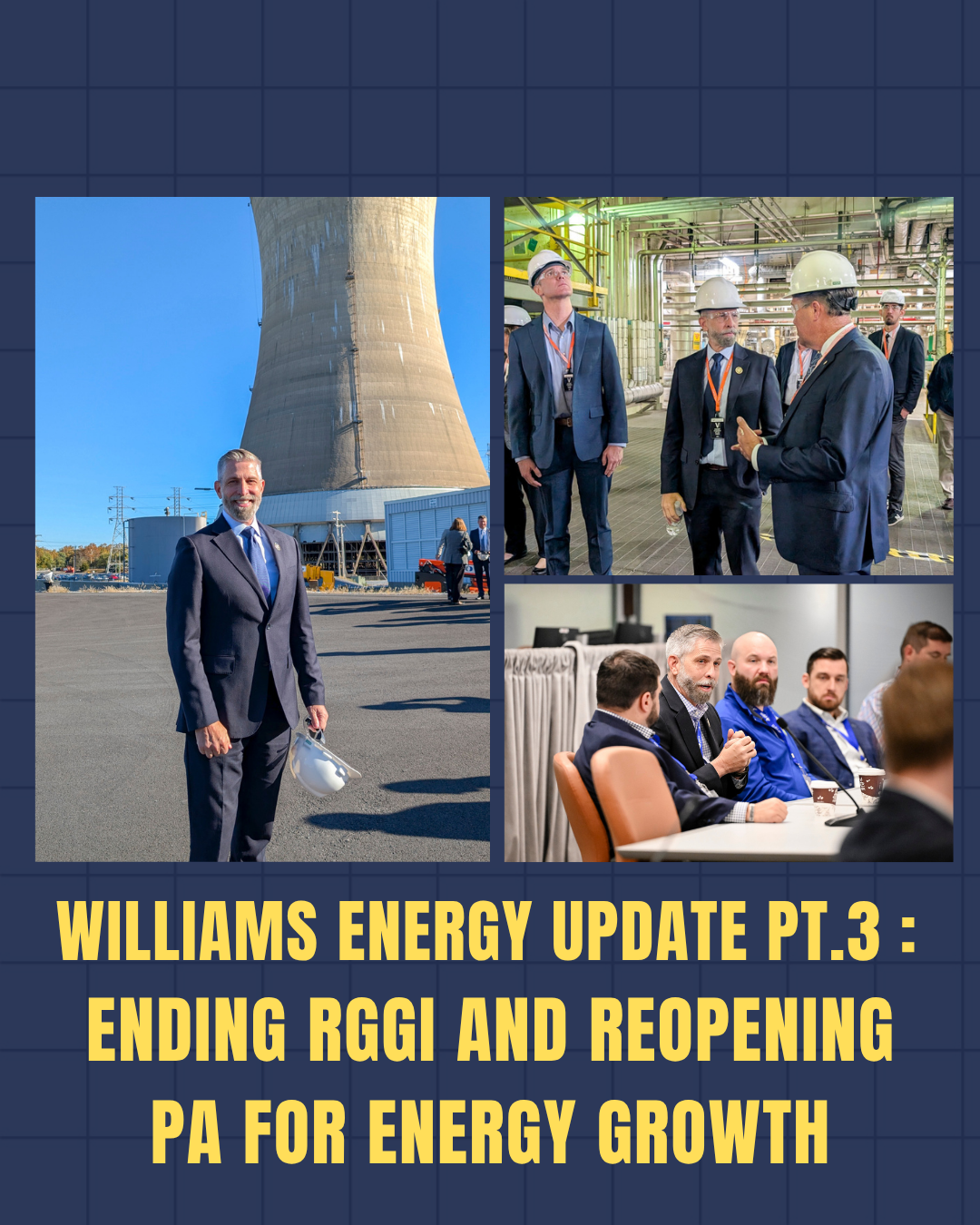 For years, I have made clear that Pennsylvania must grow its electricity capacity if we expect to meet rising demand. Only recently have we seen this pricing reality reflected in our electricity bills. This budget delivers the reforms we have long needed. We removed the unconstitutional energy tax, known as the Regional Greenhouse Gas Initiative (RGGI), which blocked new electric generation and discouraged private investment. Our exit from RGGI means we will again open Pennsylvania's energy production to lead the country in electricity generation. That is a huge economic win for the Commonwealth and especially our electricity consumers. As I will discuss below in the third part of my energy articles, our consumer electricity costs are dramatically higher right now because anticipated need grossly outweighs the available supply. It is simple economics: high demand versus low supply equals higher price. We must have more electricity generation as fast as possible to address electricity affordability. Ridding our state of RGGI involvement will help immensely. The Governor agreed. The Senate and House Democrats agreed. In fact, the portion of the budget which cancelled our participation in RGGI passed the House 189-14 with only four Democrats voting No. That is an amazing bipartisan statement about unlocking our energy future.