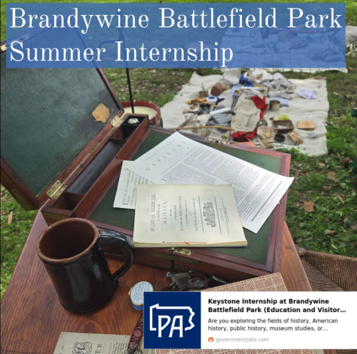 Are you exploring the fields of history, American history, public history, museum studies, or education and looking for some real-world experience? This summer, step into the story at Brandywine Battlefield Park. Brandywine Battlefield Park is looking for a Keystone Intern in Education and Visitor Services. This is your chance to dive into public history, welcome visitors, and help share the stories of one of Pennsylvania’s most important sites. You’ll get hands-on experience with tours, programs, and visitor engagement while building skills that will serve you well in the museum and education fields. Applications are open now for the Pennsylvania Historical & Museum Commission’s Keystone Internship Program.
