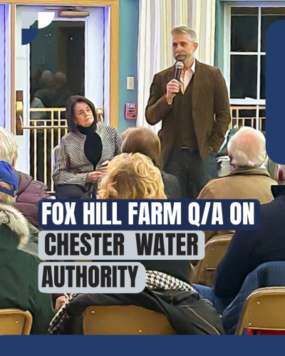 Thank you to the residents of Fox Hill Farm (Concord Township) for inviting me to a presentation by the Chester Water Authority (CWA) board chairman and an advocate for “Save CWA,” where I also spoke about my efforts on behalf of CWA over the last five years. Save CWA presented the history of the water utility in the City of Chester, its move to serve more than 30 municipalities in Delaware and Chester counties, and where we sit in the current bankruptcy litigation by the City of Chester.