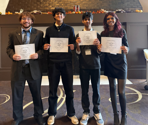 Garnet Valley’s Model United Nations team earned international recognition at the Princeton Model United Nations Conference as the Outstanding Small Delegation. Students who earned awards include Eashan Chawak, Saharsh Narasingolu, Evan Patel, Trisha Srivastava, and Lucas McKitty. Congratulations!