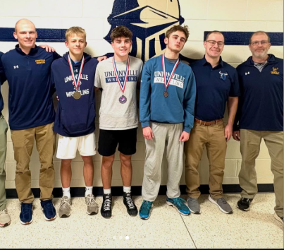 Unionville wrestlers delivered a strong opening performance. Tommy Robinson won the 127-pound Ches-Mont title. Dylan Baughan placed third in the 139-pound division, and Eban Burry placed sixth in the 121-pound division.