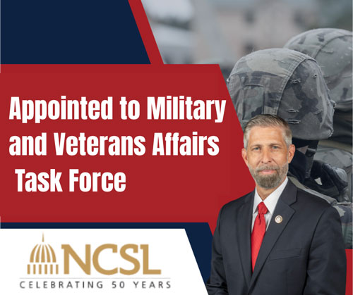 I am appointed to serve on the Military and Veterans Affairs Task Force, a group within the National Conference of State Legislatures (NCSL). The Veterans Affairs Task Force consists of leaders from all states working together on bipartisan policy issues helping veterans, service members and their families across the country. I was asked to join by my veteran colleagues on the Energy Supply Task Force who also serve on that multi-state policy collaborative.