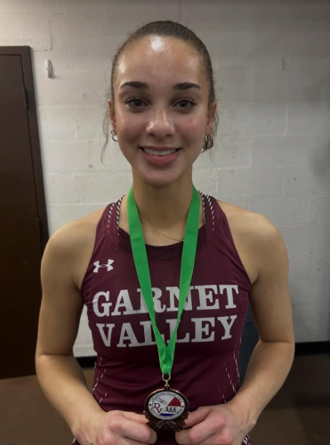 Congratulations to Avery McCrimon, a Garnet Valley Senior, who won first place in the 60-meter women’s race. She ran a very impressive 7.81 second time, a school record for Garnet Valley. Great job, Avery!