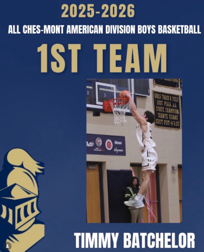 Congratulations to Rustin men’s basketball player Timmy Batchelor on earning First Team All Ches-Mont recognition. In his final high school season, Timmy Batchelor recorded 229 points, 149 rebounds and 23 blocks while shooting 52% from the field.
